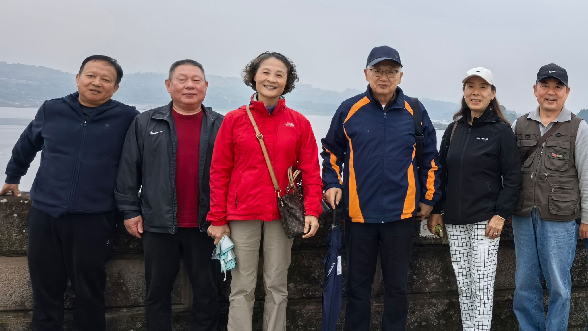 一行人来到长寿菩提古镇,在人文大街民间综艺馆、衙门、城门楼前驻足,感受巴渝文化及中国寿文化。随后,到达狮子滩水库大坝,边欣赏美丽的风景边认真学习大坝上宣传栏里关于狮子滩水电站发展历程的介绍,了解到狮子滩水电站兴建于1954年,建成于1957年,是我国第一个五年计划第一批水电站中最大的工程建设项目,也是新中国第一个自己设计、自己施工的全流域梯级水电开发工程。国家老一辈无产阶级革命家周恩来、朱德、李富春、李先念等都曾先后亲临电站视察。行走在大坝上,老同志们仿佛还能感受到当年万千工人在此紧张奋战的情景,感慨他们为国家建设而奉献的无畏勇气和聪明才智。