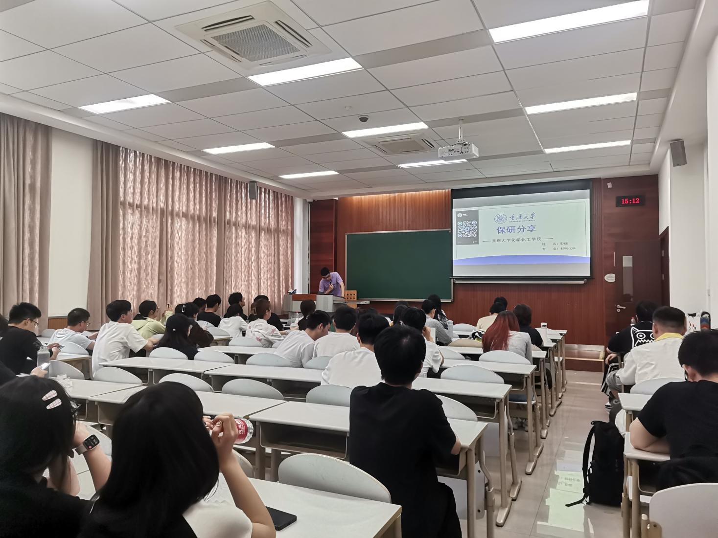 2024年4月18日下午,为针对性的为大二、大三同学提供学业发展建议与指引,化学化工学院开展“化梦启航”系列活动之“研读梦想”保研经验分享会。本次保研经验分享会邀请到了2020级顺利保研北京大学、复旦大学和南京大学三所国内知名高校的优秀本科生进行经验分享,2021级本科生辅导员鞠亚琼主持。