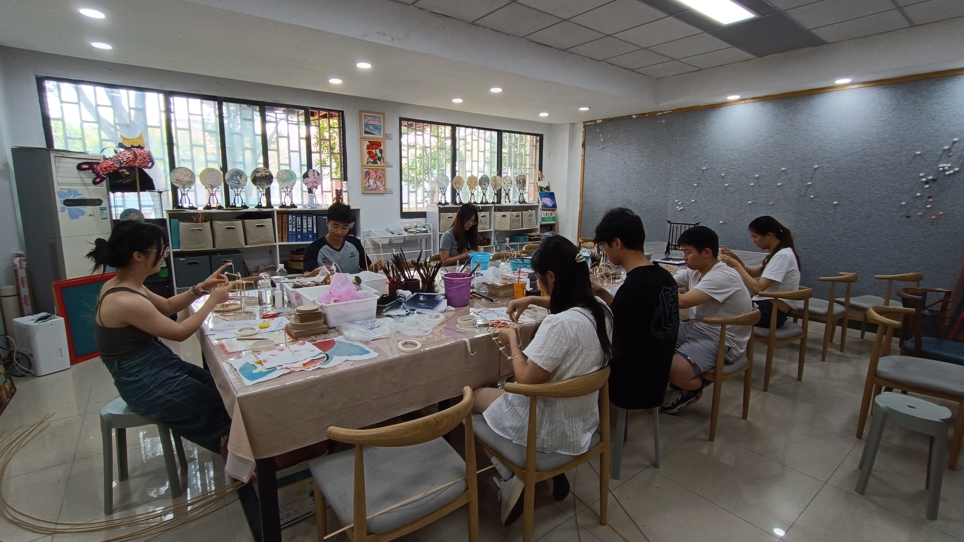 最后,陈笑带领同学们对鱼灯的各个部分分别进行糊布处理,做到每一部位都糊布完整。在这个过程中同学们团结协作,积极尝试,不断积累经验,从而提高糊布成功率。同时主讲人也从旁纠正同学们的错误,大家在一片和谐的气氛中完成了鱼灯的糊布环节。