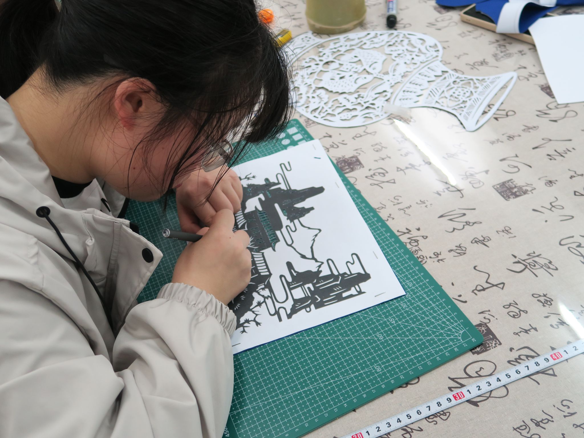首先,向念介绍了剪纸的民俗历史,她指出,剪纸不仅是为了美化生活环境、记录生活日常,更是人们对美好生活的向往。随后向念介绍了剪纸的基本知识和制作步骤,演示了刻刀的注意事项和使用技巧。她一边讲解一边详细演示,强调了刻画的深浅和力度控制,以及避免回刀和减少毛刺的技巧。