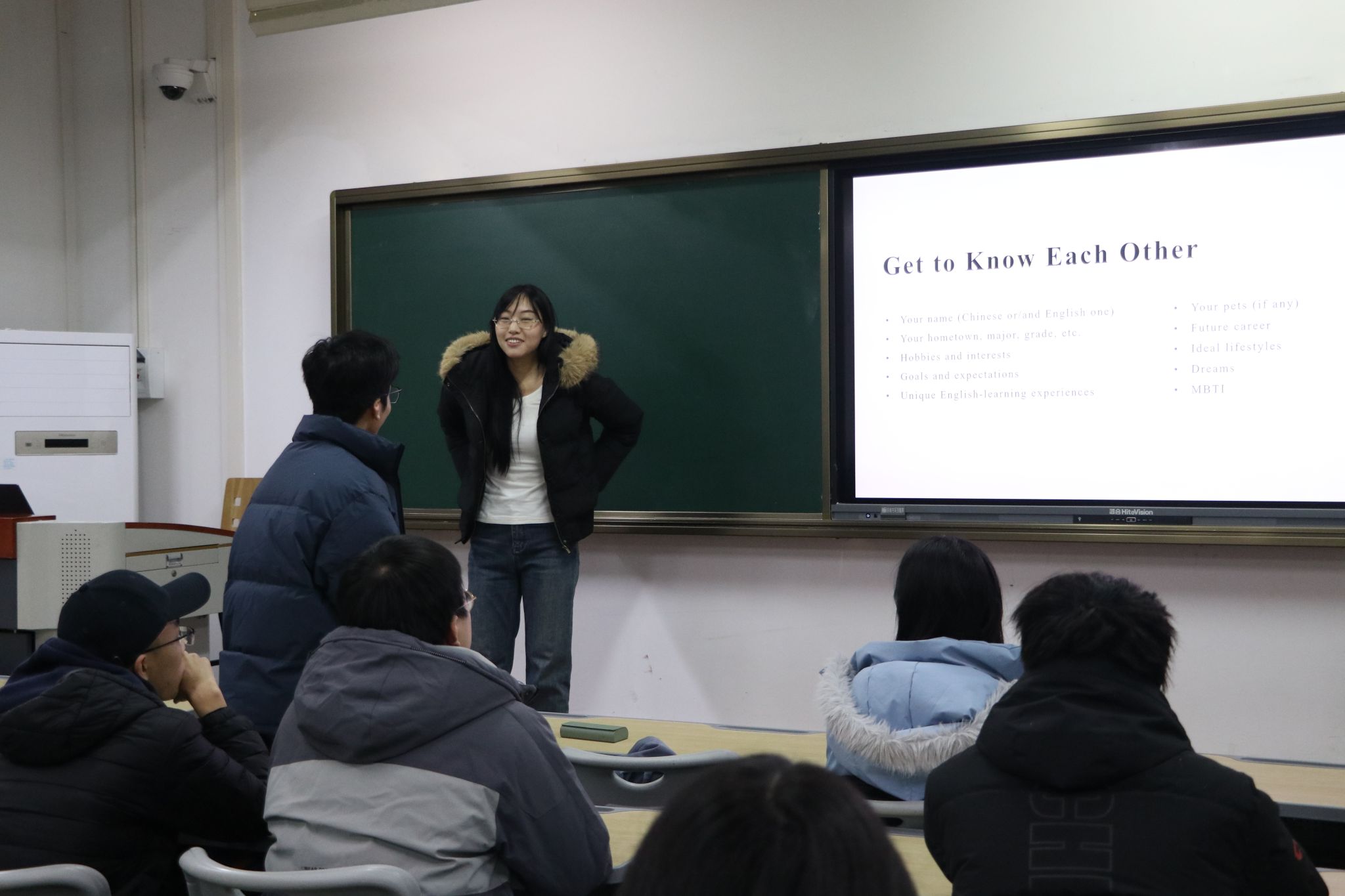 课程开始,侯格格同学引导大家进行了破冰活动,同学们依次用英语进行了简单的自我介绍。活动每节课程都将以不同的形式深入学习一个主题,让同学们在轻松愉快的氛围中掌握实用的口语技巧。课程进行过程中,她还播放了TED演讲视频《学习新语言的秘诀》,以拓宽同学们的视野,激发大家对口语学习的热情与兴趣。最后,侯格格同学还特别设计了课后作业环节,希望同学们课后能撰写一份成熟的英语自我介绍并能够流畅、自信地表达出来。