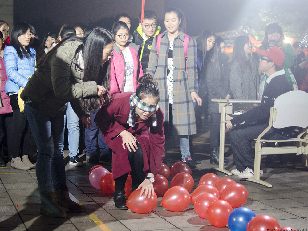 游园会现场阵阵大笑,引来更多同学加入到游戏中来。