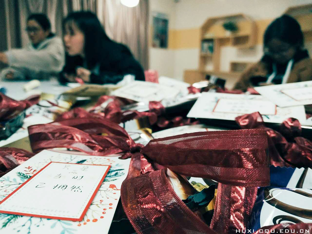 化工学院团委的学生正在为学院女生准备精美的女生节礼物。