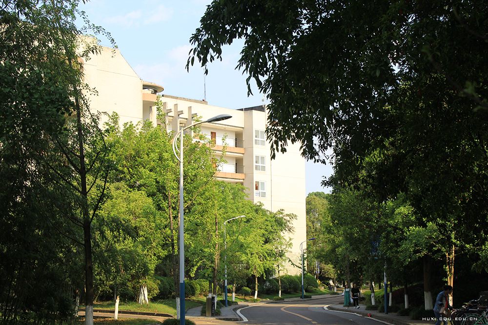 天很蓝,云很白,下课铃响,学生三三两两经过图书馆。